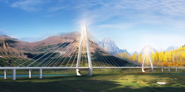 近日,由隧道股份城建设计总院勘察设计的跨黄河大桥——兰州西固柴家峡大桥顺利开工,该桥是隧道股份以EPC总承包模式承接的兰州西固柴家峡大桥至港务区大桥联络线工程最重要的标段之一。大桥建成后将为兰州市西部地区增加一条城市主干道,推动兰州市主城区的延伸发展和兰州国际港务区的建设。出于黄河特殊地貌环境的限制,该桥将成为中国最小曲线半径和最大跨径的大桥——曲线半径600m、主跨跨径350m+,宛如一个巨大的“耐克”LOGO!