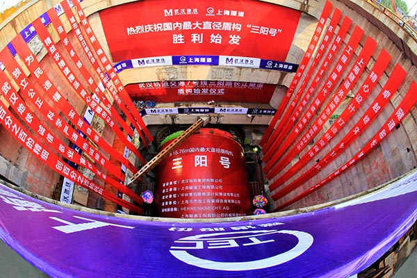 武汉三阳路长江隧道工程是国内在建的大直径盾构隧道,其采用的“巨无霸”盾构直径达15.76米,是现役世界第三大、中国大陆直径大的盾构机,超过5层楼高。隧道不仅直径问鼎世界三甲,且同时面临长江区段水位落差10米以上,高石英含量砂层、强风化泥质粉砂岩“钻石层”、“粘土层”复杂土层混合的水文、地质多重“险点叠加”,被中国工程院院士孙均、钱七虎同时誉为一道隧道施工领域的“世界级难题”。