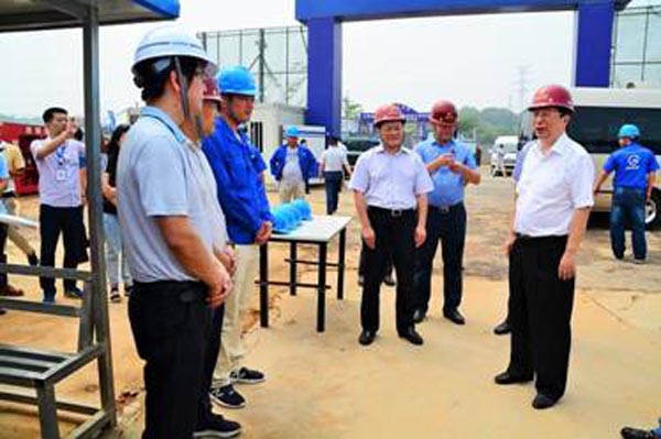 7月29日,湖南省委常委、长沙市委书记胡衡华,长沙市委副书记、市长陈文浩及长沙市总工会等,代表新的长沙市委班子和长沙市民,来到隧道股份设计施工的湘府路快速化改造工程2标施工现场,慰问高温中仍奋战在一线的建设者,“检阅”隧道股份建设团队。