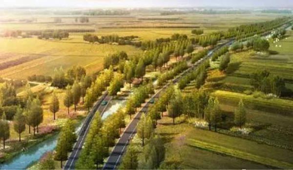 北沿公路沿线两侧不仅有田园郊野,还有北闸村、东平森林公园、东平镇、海鸥新村等人口较集中的节点,在人员比较集中的地点设置城市式断面,道路两侧布置慢行通道,满足旅游、休闲等慢行交通的需求。其余路段基本为农田郊野,以公路式断面进行布置,道路两侧开阔的视野将使行驶在其中成为一种享受。