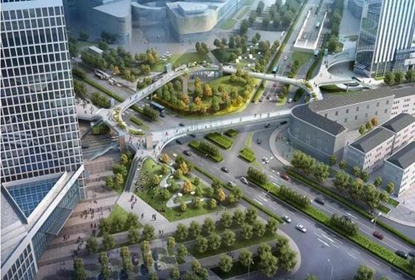 在连廊工程中,地面附属坡道及绿地堆坡面积将达到6338平方米,桥面上种植绿化与各广场绿化进行有机衔接,形成一个连续的“城市绿轴”,达到桥梁景观与周边景观完美融合的效果;同时,连廊各部位也将有分散的花坛结合座椅点缀,使得整个连廊不仅是通行的工具,也是附近上班族一个休闲的好去处,市民们愿意停留和休憩的所在。