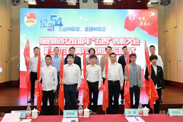 4月28日,隧道股份2018年“五四”表彰大会暨首期青年大讲堂在股份公司总部举行。隧道股份党委副书记陆雅娟、市国资委团工委书记郭华以及股份公司总部各职能部门负责人、各子公司分管领导、团委书记出席会议,并与来自隧道股份一线的200余名青年代表,共同分享这一最燃的青春时刻!隧道股份党委副书记陆雅娟、市国资委团工委书记郭华,为获得2017年度共青团荣誉的先进青年集体、个人表彰、授旗。