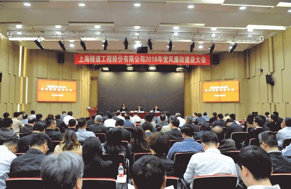 4月28日,隧道股份召开2018年党风廉政建设大会。隧道股份党委书记、董事长张焰,党委副书记、总裁周文波,副总裁王志华、杨磊,纪委书记朱晨红,副总裁盛伯荣,高级副总裁王炯、陈涛等领导班子成员出席会议。