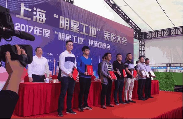 会上,123个承载着上海2400万市民民心的“明星工地”获奖,隧道股份总裁周文波等领导和专家为工地圈的明星们颁发奖项。