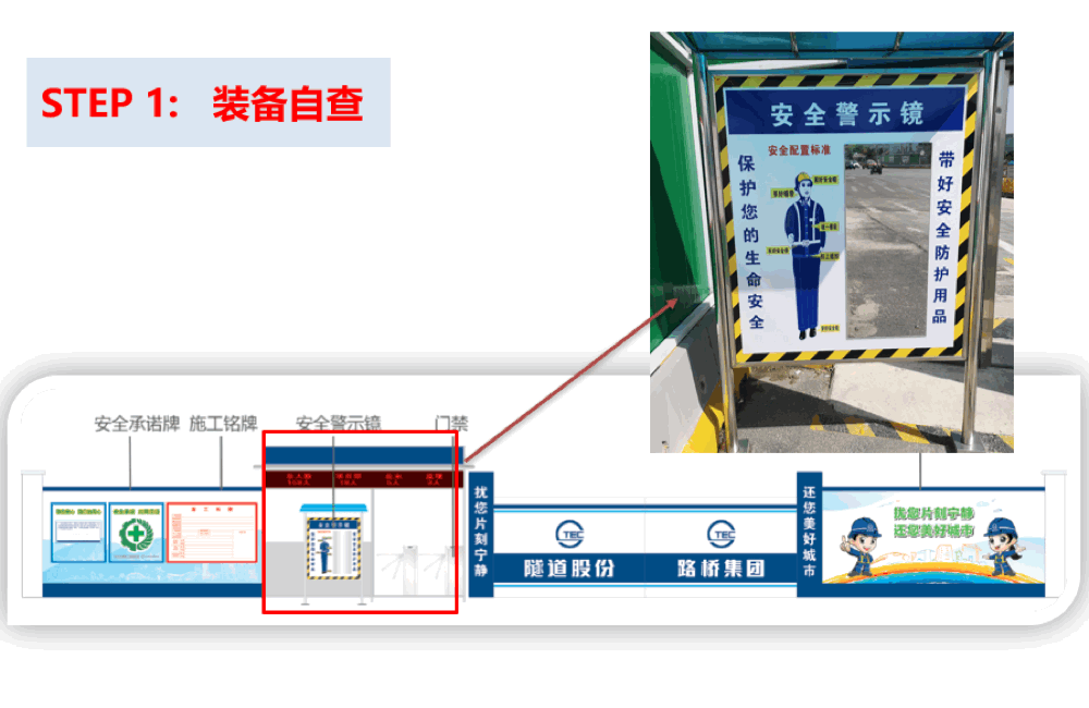 新版的安全文明施工标准图集,在入口处设置安全“5步走”,让员工在进入工地的那一刻起即把安全“吊在心上”!