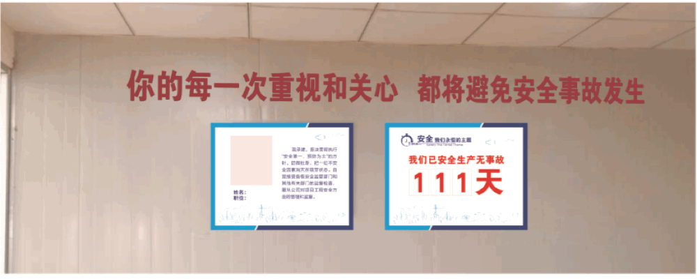 在生活区,重点突出“家文化”。通过家文化主题欢迎墙、亲人照片墙等各类亲情标识标牌,用家人的牵挂教育员工保护好自己,让家人安心放心。