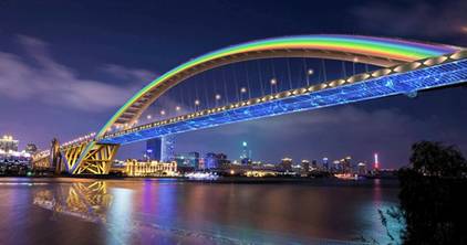 除此之外,高温下的城市运营人为上海标志建筑——卢浦大桥刻画美“妆容”。在高达百米的卢浦大桥桥顶,城市运营的“蜘蛛人”通过安装更换大桥9种1314套的灯具,让大桥在视觉上更接近自然彩虹状态,为四方友人展现滨江景观带夜景“新魅力”。