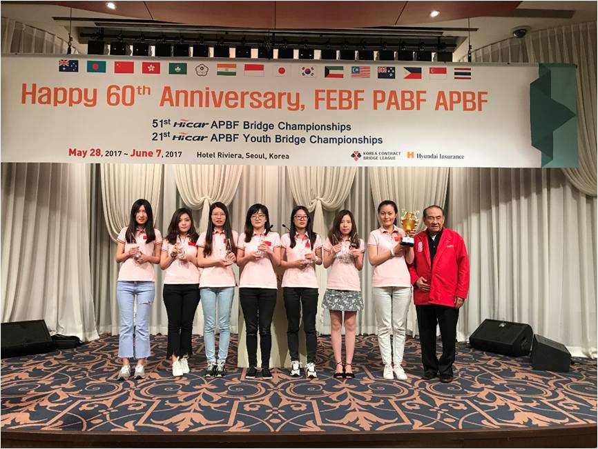2017年,多次在世界级桥牌赛事上荣获名次的上海桥牌青年队,开始向“世界冠军”发起冲刺。由教练傅学明、赵冰,队员傅博、倪馨仪、杨扬、李欣怡、胡承珂、蔡祎婧组成的上海青年桥牌队,先是在2017年全国青年桥牌团体赛上获得了女子团体冠军,并在韩国举行的亚太青年桥牌锦标赛上拿到了这一组别的冠军,从而获得了代表中国青年女队参加本届世青赛的资格。在代表世界高水平的青年桥牌赛事——世界青年锦标赛中,隧道股份支持的中国青年女队,一举击败美国、法国、波兰,夺得届冠军。来自上海的选手们,捧起代表国家荣誉的世界冠军奖杯与“熊猫”吉祥物,在这一世界级赛事上为祖国争光。