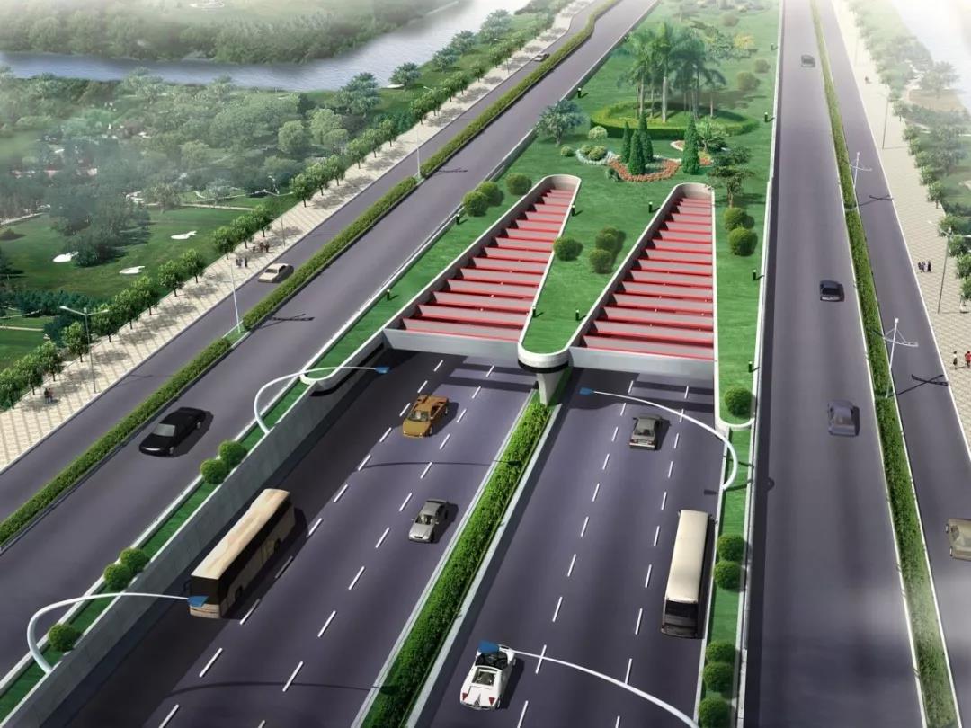 通道西起文明东路与白龙南交叉口,沿文明东路往东依次下穿滨江路、南渡江,全长4.3公里,其中隧道段全长2.7公里。隧道截面宽度28米,设双向 6 车道,设计时速主线 60公里/小时。隧道建设将大大缓解琼州大桥交通压力,提升江东区域交通能级,促进区域协调发展,增强区域的积聚辐射能力,并推动组团间的互动发展。
