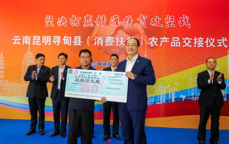 隧道股份上海隧道向云南昆明寻甸县递交支票,并接收农产品