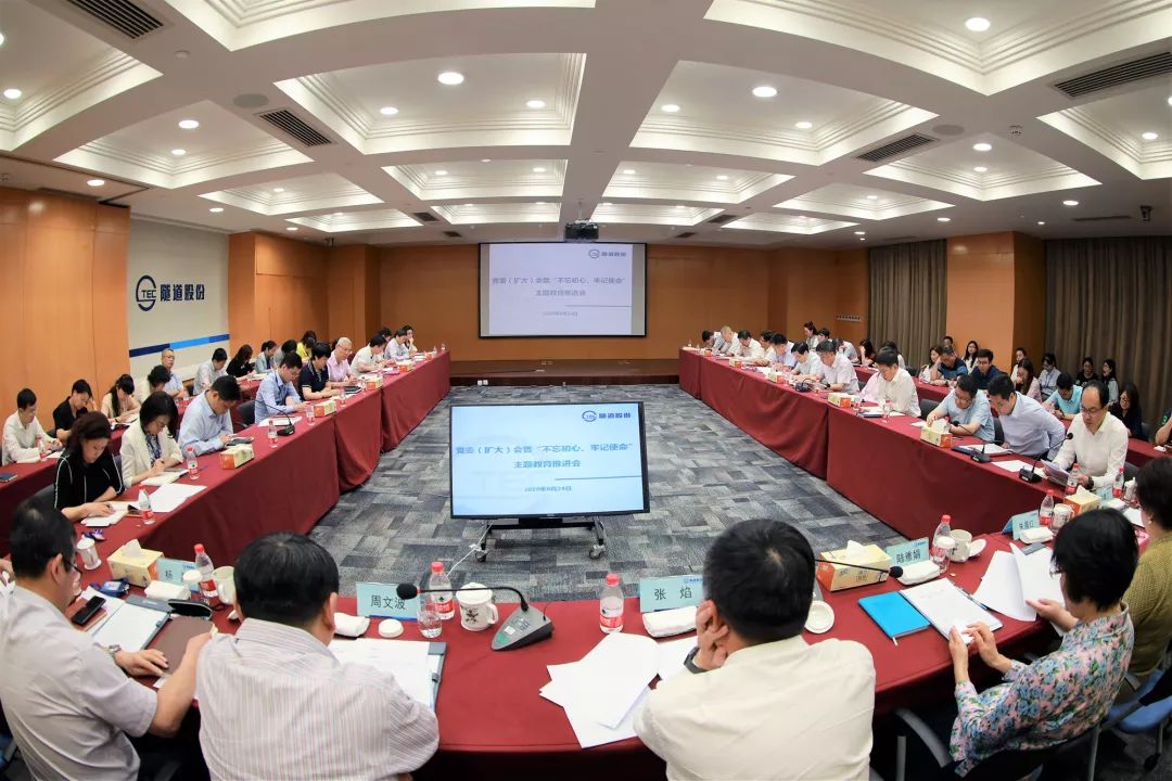 隧道股份党委书记、董事长张焰出席推进会并做重要讲话,党委副书记、总裁周文波主持会议,党委副书记陆雅娟对股份公司题教育实施方案进行深化部署。隧道股份副总裁杨磊、纪委书记朱晨红,党委委员朱东海、徐蠡江,股份公司党委主题教育办公室成员,各子公司党委书记、分管副书记、主题教育办公室等出席会议。