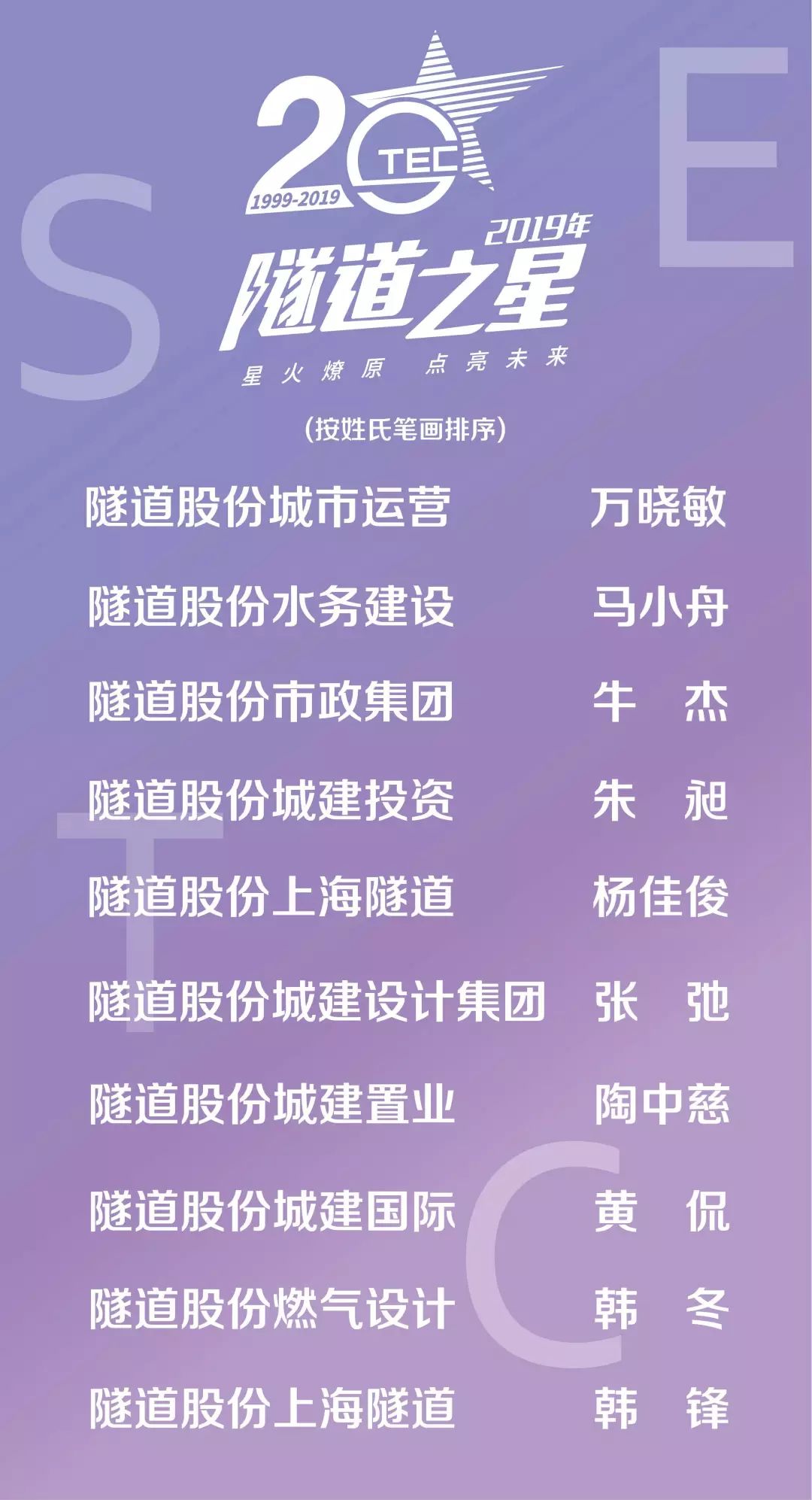经过公开记票,最终10名2019“隧道之星”、15名2019年度“隧道之星”提名奖获得者名单正式出炉!