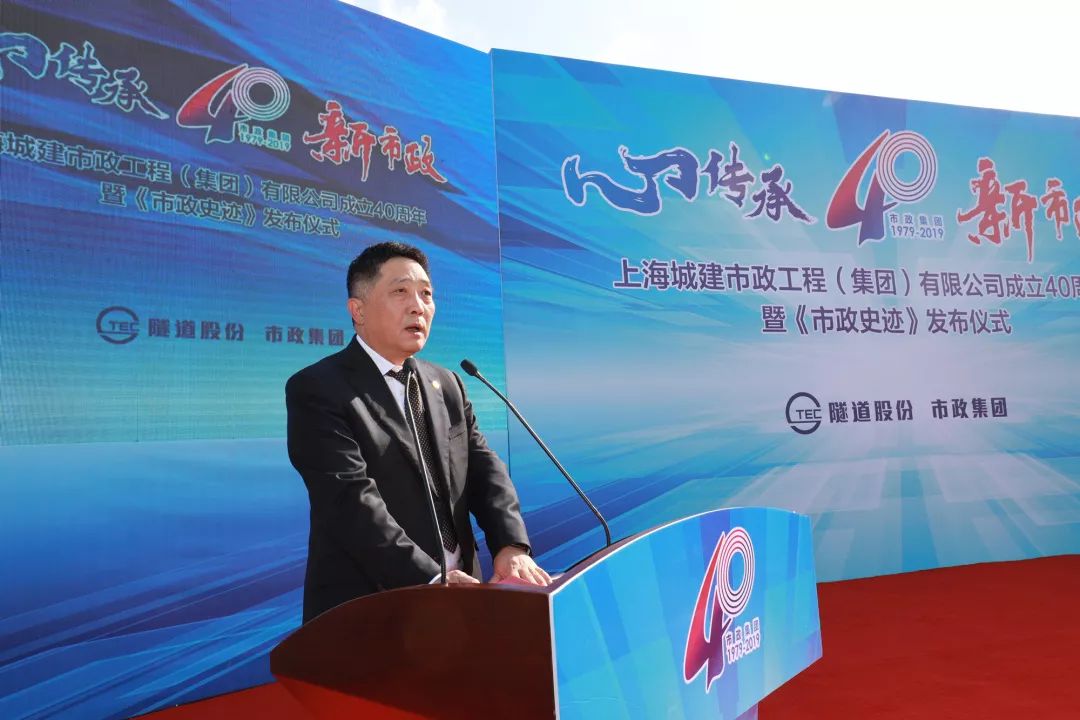 会上,隧道股份党委副书记、总裁周文波,原上海城建集团党委副书记、董事长,市政二公司党委副书记朱家祥,共同为隧道股份市政集团40周年纪念画册——《市政史迹》书墙揭幕,并为新老市政人授书。