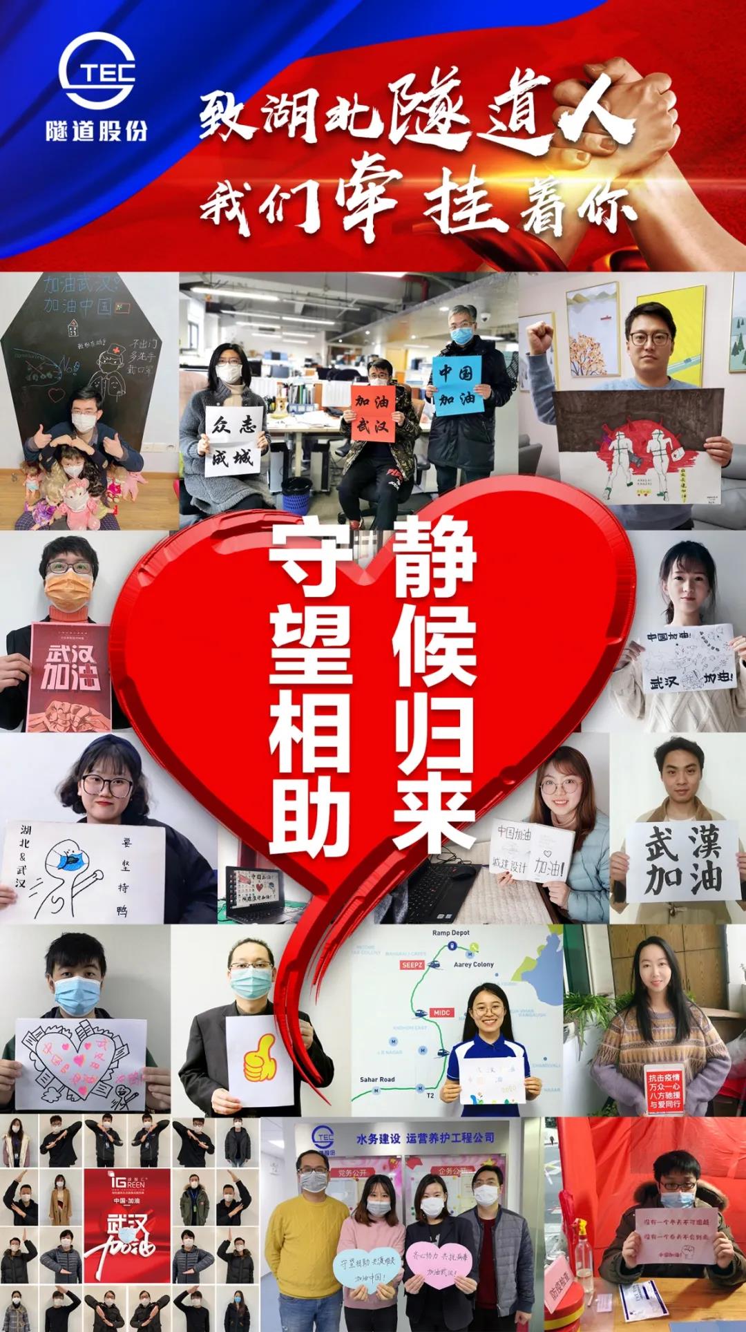 现在,湖北全省的防疫形势依旧严峻。这几天,我们一直同滞留湖北的同事们通电话,询问生活健康状况。对于物资紧缺、无法出行,虽然你们淡然处之,只说了一句“一切安好,请大家放心”。但可想而知,电话那头你们所要面对的困难、心里担忧的心情。也许相聚还要再等一段时日,但请你们一定牢记,无论有什么困难,无论你们身在何处,我们一直与你们同在,隧道股份就是你们最坚强的后盾,我们必定会竭尽所能帮助你们共克时艰。