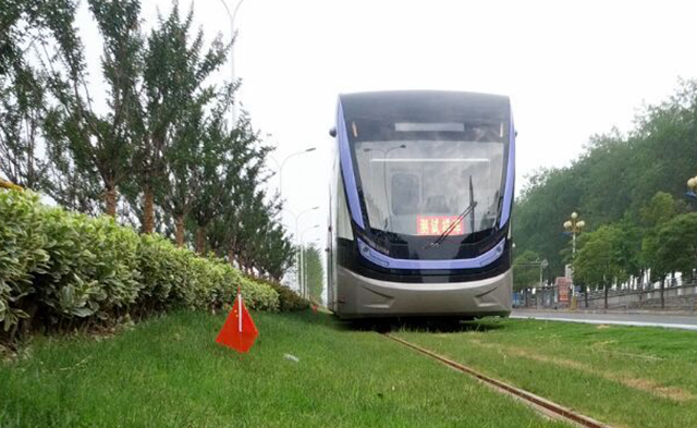 淮安有轨电车是无触网有轨电车线路。城区段沥青面下安装信号环线,采取国内外首创的暗埋方式,通过定制支架、定制绝缘连接件、与混凝土一同浇筑等工艺确保了环线功能的稳定性。道床采用全绿色整体道床技术,将电车的线路巧妙融入到城市道路中间的绿化带,轨道与绿草“融为一体”。隧道股份还成功将高铁轨道施工用CPIII测量控制技术应用于有轨电车轨道施工,实现了工程整体的高质量、高标准。