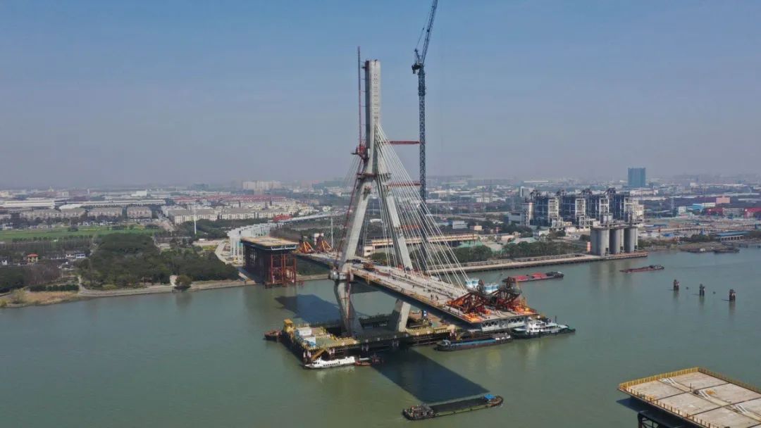 “每对主梁节段吊装就位后,我们要逐段进行焊接、涂装,并且测量监控、斜拉索张拉力调节等工作。”隧道股份上海路桥项目负责人表示,待已经吊装好的梁段连接焊接完成后,接下来将进行湿接缝浇筑,并安装斜拉索张拉——就像是用“胶水”把吊上来的节段和大桥“粘起来”一样,将节段与已完成的桥塔相连接,保障桥梁结构稳固。大约十天左右可进行下一跨节段主梁的吊装作业。