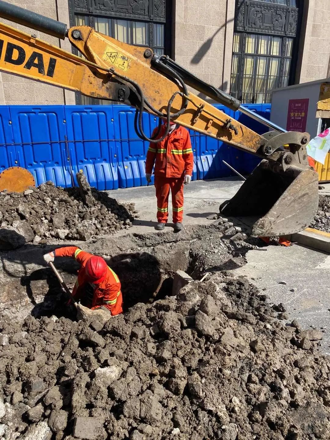 “这里埋藏的管线、设施,以及周边的建筑,许多都已经有百年以上的历史。因此我们必须像在考古作业的现场一样,做好精细化施工。”隧道股份城建水务项目负责人表示,为了防止大型设备对地下设施的“误伤”,隧道股份城建水务的施工人员还专门制定了机械设备施工专项方案流程,对于关键点位采用“外科手术”式手工施工方式,不断排摸管线准确位置,确保沿线管线、建筑安全。