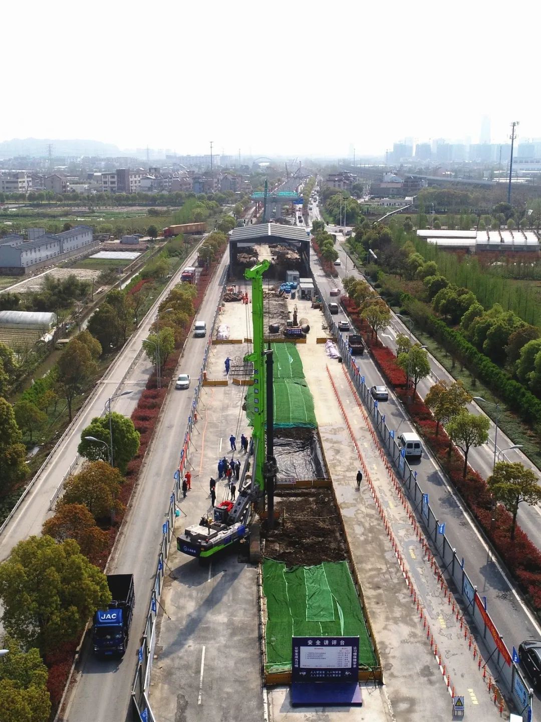 此外,隧道股份上海路桥还主动对接工程沿线村委、厂房、交警、路政等各部门,建立联动机制,保障施工期间城市交通系统基本能够正常运行,最大化减少工程施工对市民出行及周边地区的社会经济活动影响。