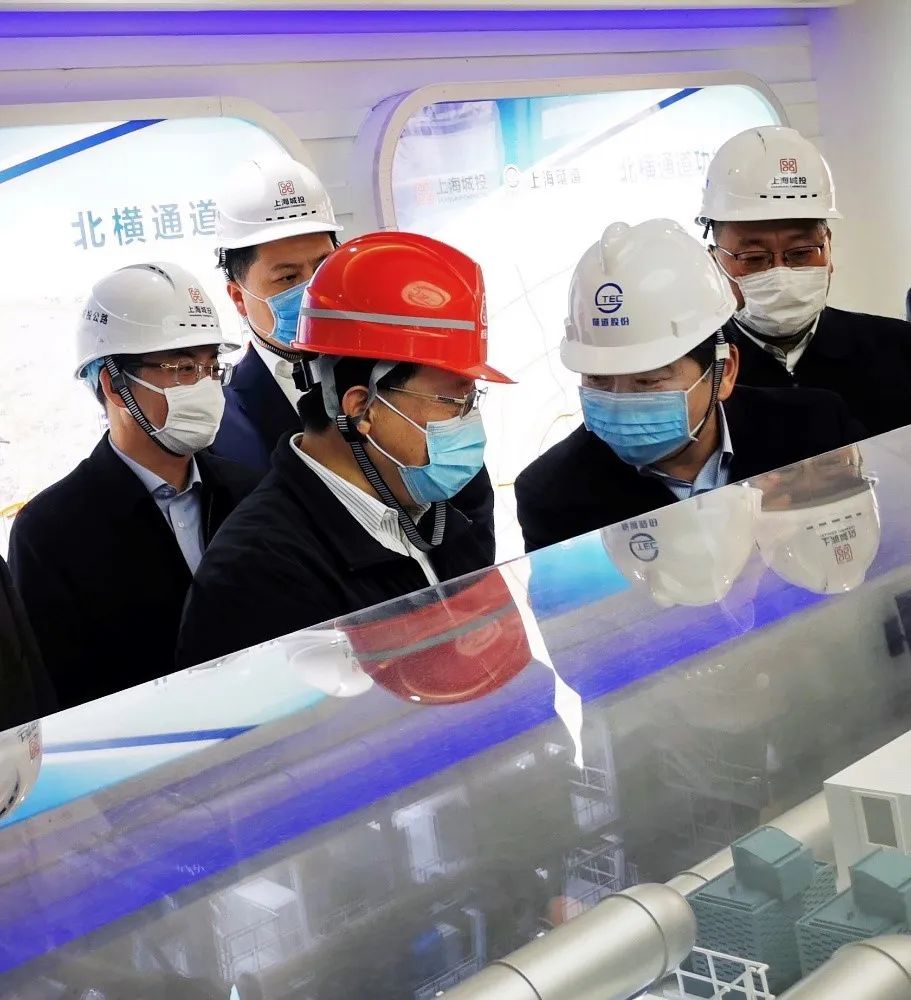 4月16日下午,上海市委副书记、代市长龚正一行,赴隧道股份上海隧道承建的“市府一号”工程上海北横通道2标,实地调研重大工程建设进展。市委常委、宣传部长周慧琳,副市长陈群、汤志平,隧道股份党委副书记、总裁周文波,隧道股份上海隧道等领导陪同调研。在北横通道中江路项目部,龚正现场察看项目沙盘和盾构模型,详细了解施工工艺和技术标准,并走进西段隧道样板段实地察看。隧道股份党委副书记、总裁周文波就项目建设进展及隧道股份超大直径隧道领域建设发展、盾构智能管控中心大数据管理服务等工作做详细汇报。