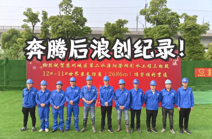 在这一项目中,隧道人操纵两台顶管掘进机,一次性完成两条全长2686米的水域段隧道顶进施工,刷新了世界“单次顶进长度最长”的顶管施工纪录!