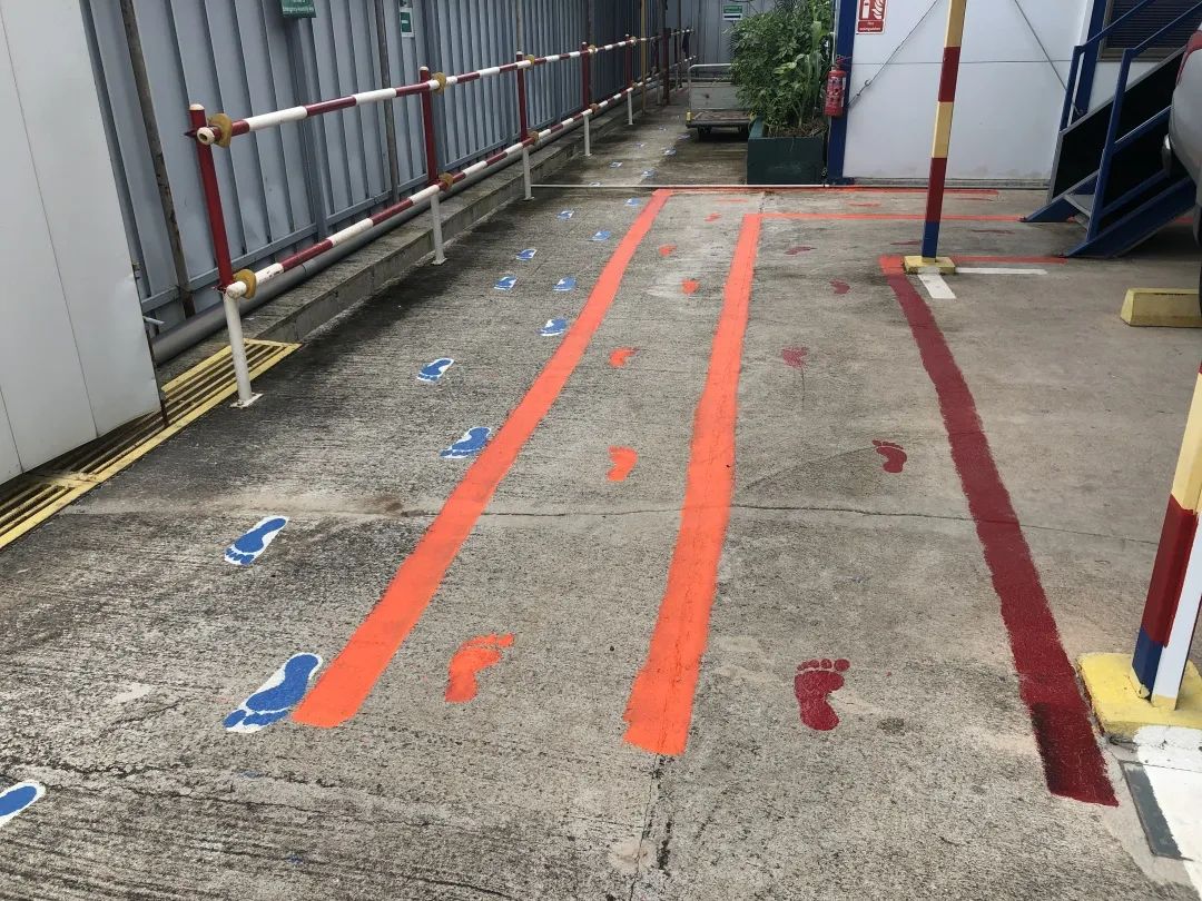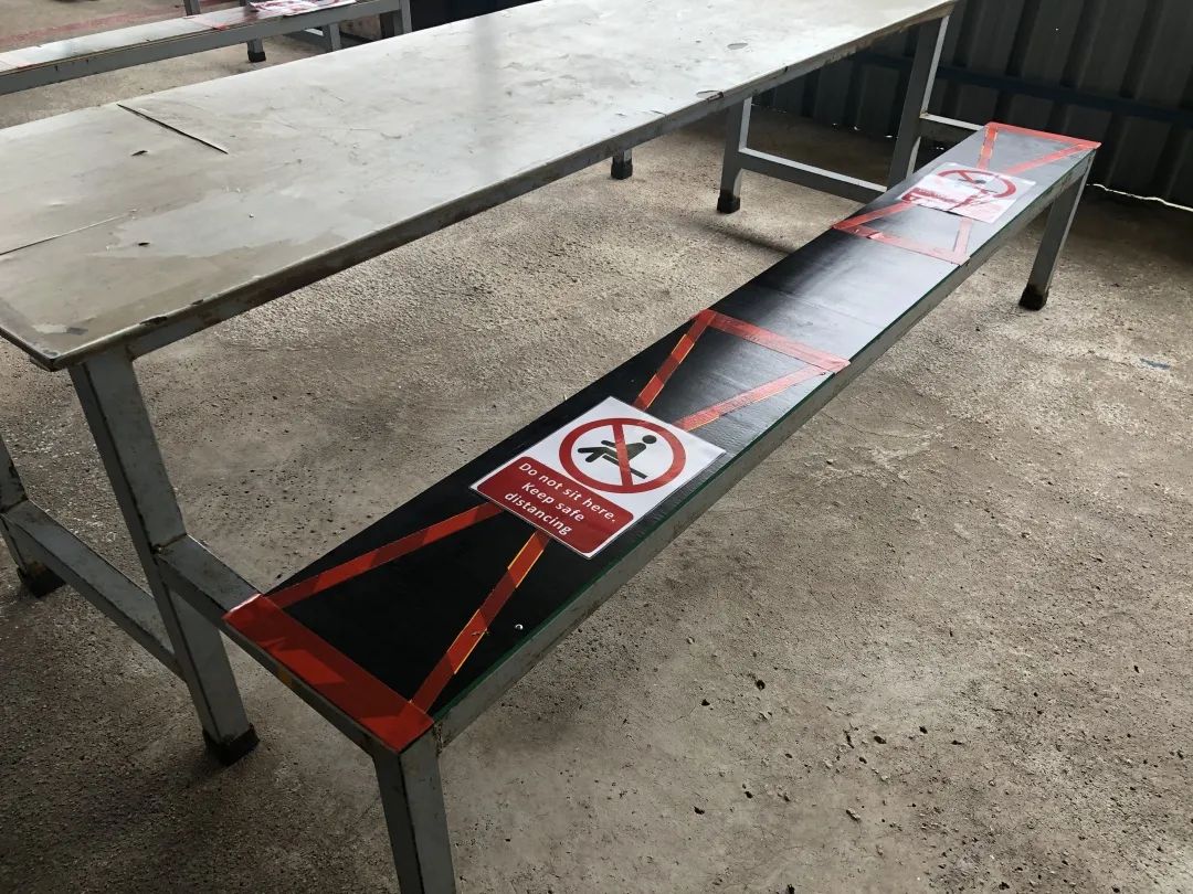“保障3米社交距离”,在新加坡从不是“一纸条文”。隧道股份城建国际在公共区域地面上标识了醒目的安全距离地贴,一人一个小脚印,长凳只能坐C位,距离产生美!