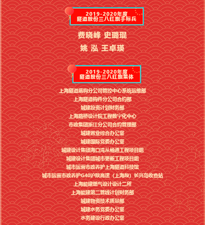 2019至2020年,隧道股份广大女职工发扬光荣传统、秉承优良作风,以开拓奋进、不断创新的勇气,以勇于担当、甘于奉献的魄力,激扬巾帼之志、奉献巾帼之力,唱响了巾帼之歌,在隧道股份改革发展的征程中展现了飒爽英姿。