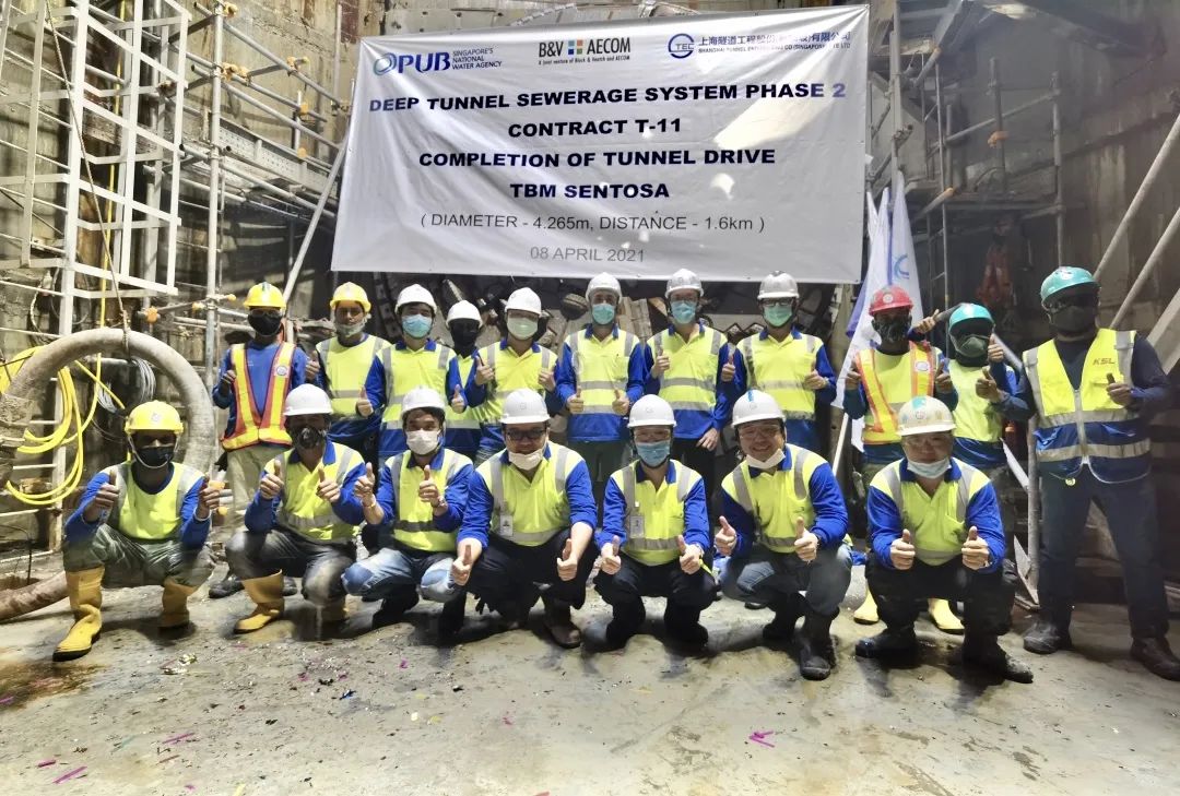 2021年4月5日,隧道股份城建国际承建的新加坡深隧道污水处理系统T11项目首条盾构隧道按期胜利贯通,这也是中资企业在新加坡的同类项目中,首个完成盾构重大节点的在建工程。隧道人以自己的坚守与奋进,向新加坡市民递交了一份最完美的“民生答卷”!