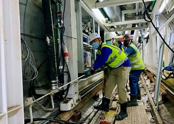 当时,盾构机正位于新加坡的交通要道下方。由于整个深隧系统工程停摆,未送电的盾构就停在了新加坡市中心交通要道的地底,安全风险非常大。隧道股份城建国际项目隧道副经理陶培尔说,“我们要去隧道内排除风险,但整个项目都停摆了,工人全都被隔离,怎么办?只能自己当工人、自己上!”