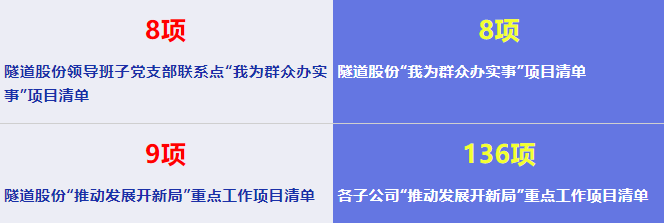 会议同时对隧道股份“我为群众办实事”项目清单、“推动发展开新局”重点工作项目清单、领导班子成员党支部联系点“我为群众办实事”项目清单与“党史学习教育巡回指导方案”进行研讨。