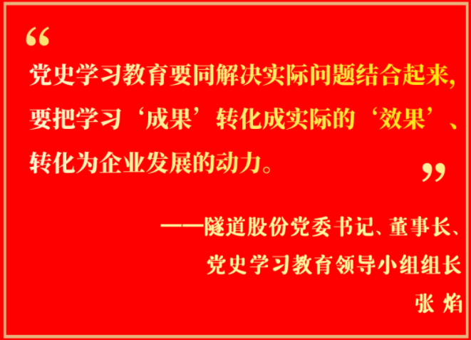 隧道股份各级党组织切实将学习党史同解决实际问题结合起来,把目标放在解决工作上的问题上、关切人民群众的生活上,推动党史学习教育往实里走。