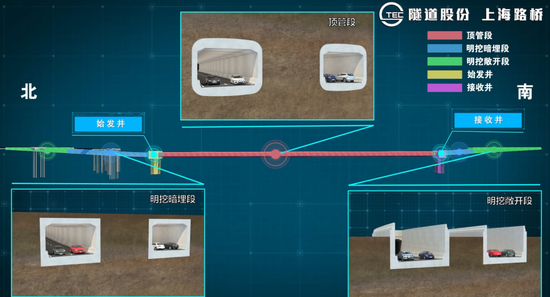 工程全长2.3公里,工程为破解现有交通瓶颈,采用“南桥北隧”方案,南桥指Ⅰ标段的祁连山路大桥,北隧则为Ⅱ标段的地下通道段,南起朱家弄河,北至镜泊湖路,全长约1.1公里,地下通道穿越S20外环线和顾村公园。