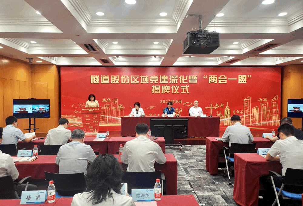 9月22日下午,隧道股份举行区域市场“两会一盟”揭牌仪式。会上,隧道股份甬台温、两湖区域的“两会一盟”——党的工作联合会、工会工作委员会、团建联盟集中揭牌。自此,两地446名隧道人,将在党旗引领之下,增进革命友谊,共同为建设美好城市贡献“蓝色力量”。