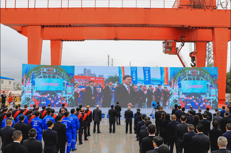 突破1000公里——隧道股份上海隧道党委书记、董事长李波直播连线珠海十字门隧道拼装现场,直径15.8m的泥水平衡盾构机正进行第1000公里管片的拼装作业。随着最后一块印有数字1000的金黄色管片缓缓嵌入,第1000公里管片完成拼装。隧道股份上海隧道党委副书记、总经理裴烈烽为隧道人的1000公里“里程碑”目标达成致辞。
