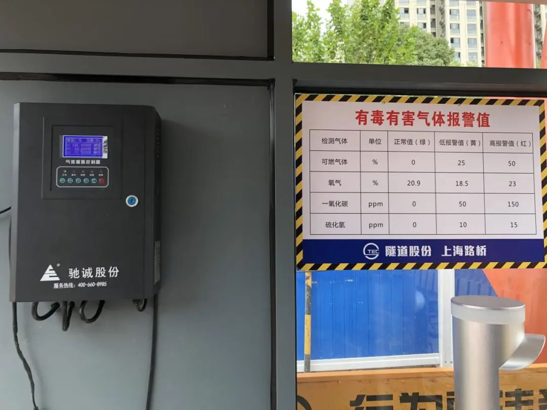 顶管施工的地层往往会搅动地层中带有腐烂动物、植物的淤泥,而产生沼气等易燃中毒气体。传统方法需要施工人员每次人工携带气体检测仪下管道测试,并每隔2-3小时重复操作,不仅占用大量人力与时间成本,而且容易造成管道内火灾和施工人员中毒事故。隧道股份上海路桥创新采用基坑及顶管气体检测系统,包括气体检测装置、报警设备、排风设备、控制???、显示终端和报警处理??椤Mü刂颇?樽远杉迮ǘ龋⒏菁觳饨峁远髡欧缟璞腹β剩蓖üň璞付猿甑募觳饨峁凳北ň嵝咽┕と嗽奔笆卑踩行С防?。该系统既节省了人力与时间投入,提高了施工效率,又杜绝了安全隐患,降低了施工风险。