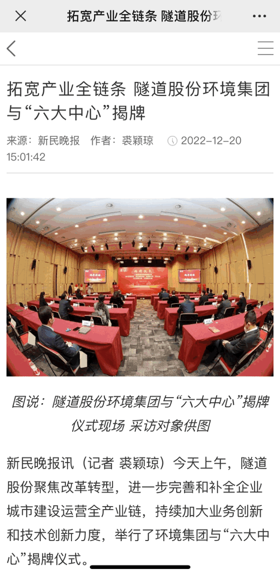 今天上午,隧道股份着眼战略全局,聚焦改革转型,举行环境集团与“六大中心”揭牌仪式。