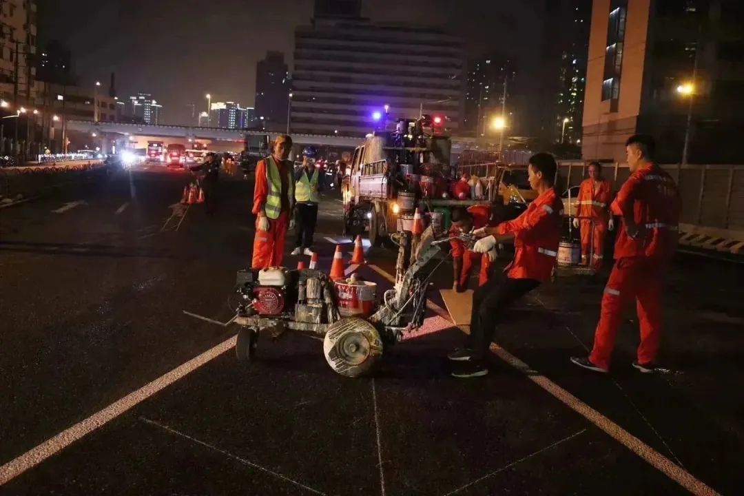●此外,项目团队还搭建了施工栈桥板和钢栈桥近2万平方米,开辟可变车道近1公里,配合业主及搬迁单位实施管线迁排及复位16公里……一点一滴、一砖一瓦的积累,让武宁路项目胜利建成。