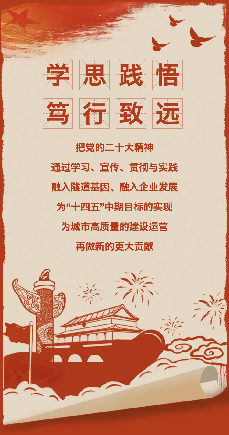 会议强调,党的二十大报告具有重大的政治、思想、实践、历史意义,学习宣传贯彻党的二十大精神是当前和今后一个时期隧道股份全体党员干部职工的首要政治任务。隧道股份各级党组织要把学习宣传贯彻党的二十大精神摆上首要议事日程,切实加强组织领导,着力提升实际效果,使学习宣传既有章法、见力度,更重质量、强效果;要用党的二十大精神指导实践、推进工作,力争圆满完成2022年各项目标任务,并为“十四五”中期目标的顺利达成做好前期规划,推动企业各项工作高质量发展。