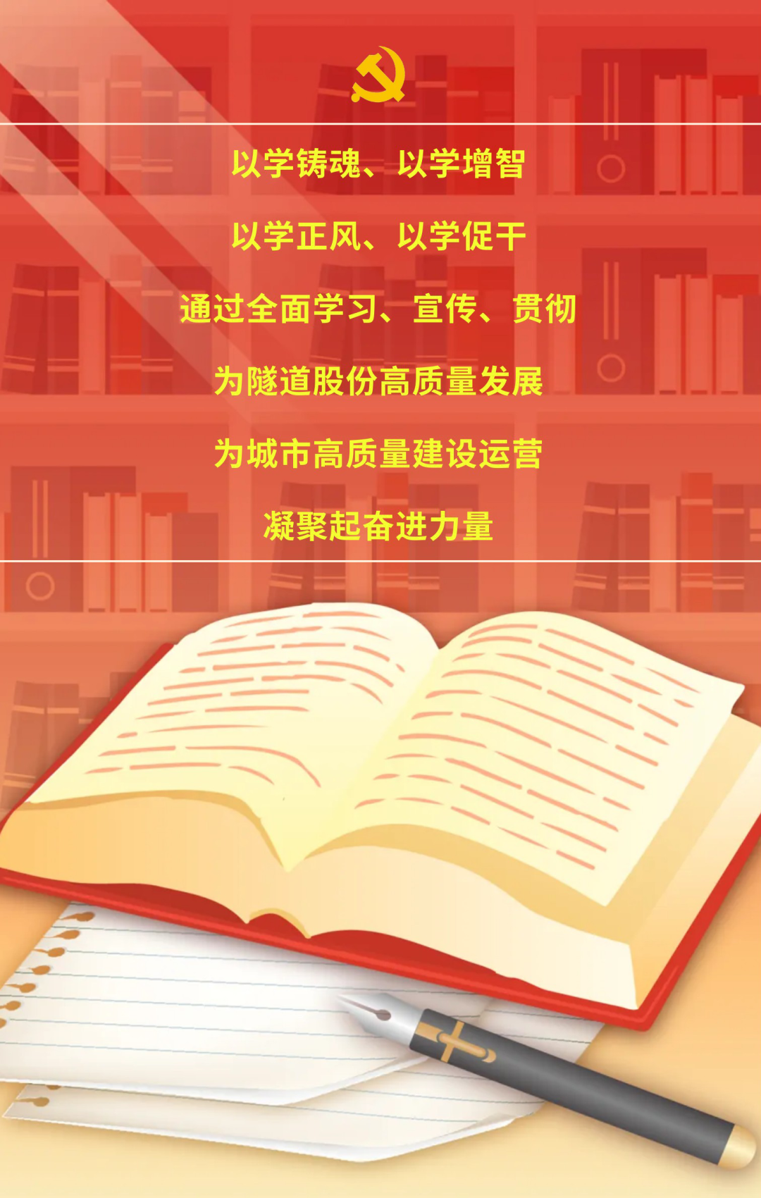 开展主题教育,总要求是“学思想、强党性、重实践、建新功”,根本任务是坚持学思用贯通、知信行统一,把习近平新时代中国特色社会主义思想转化为坚定理想、锤炼党性和指导实践、推动工作的强大力量。隧道股份全体党员干部要全面学习领会习近平新时代中国特色社会主义思想,全面系统掌握这一重要思想的基本观点、科学体系,不断提升自身能力和水平。
