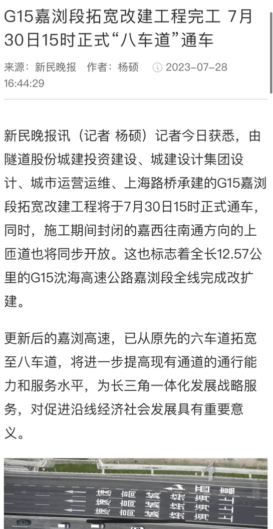 更新后的嘉浏高速,已从原先的六车道拓宽至八车道,有效提升上海、江苏之间的交通联系,进一步加快高速公路通行能力,提升路网服务水平。