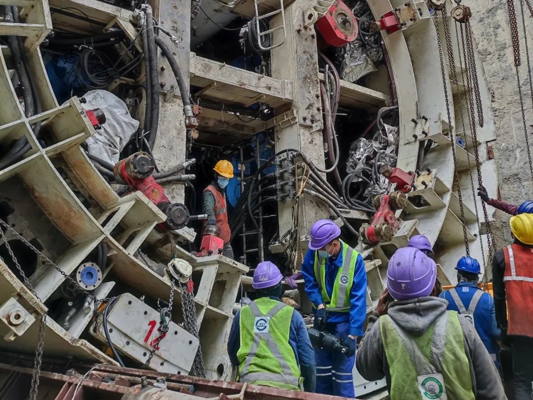 对此,隧道股份城建国际项目团队以“全力以赴”应对“艰难挑战”。在供应链安全与人力资源方面,项目团队在新冠疫情最艰难的时刻依旧坚守工程第一线,通过分批合理安排盾构施工人员下井作业、打通国际材料供应关键环节等,确保盾构推进所需的人员、设备、材料齐备。在工程风险控制方面,项目团队依托数字化手段,密切监测推进数据,在高架桥站点下方使用微型桩技术进行明挖隧道施工,并对推进途中的粉质砂土地层进行旁通道开挖,成功应对一系列施工风险,将对周边民众的生活和公共交通的影响降到最低。