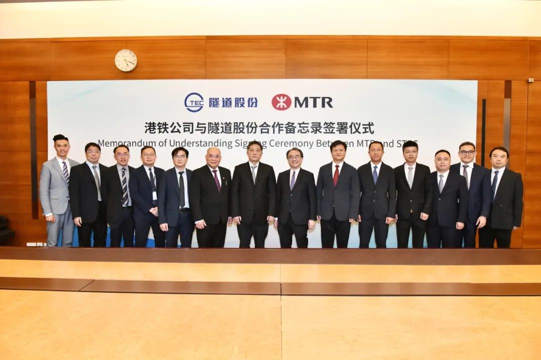 港铁公司行政总裁金泽培,隧道股份党委书记、董事长张焰见证签约;港铁公司车务总监李家润、隧道股份副总裁李波代表双方签署战略合作协议。