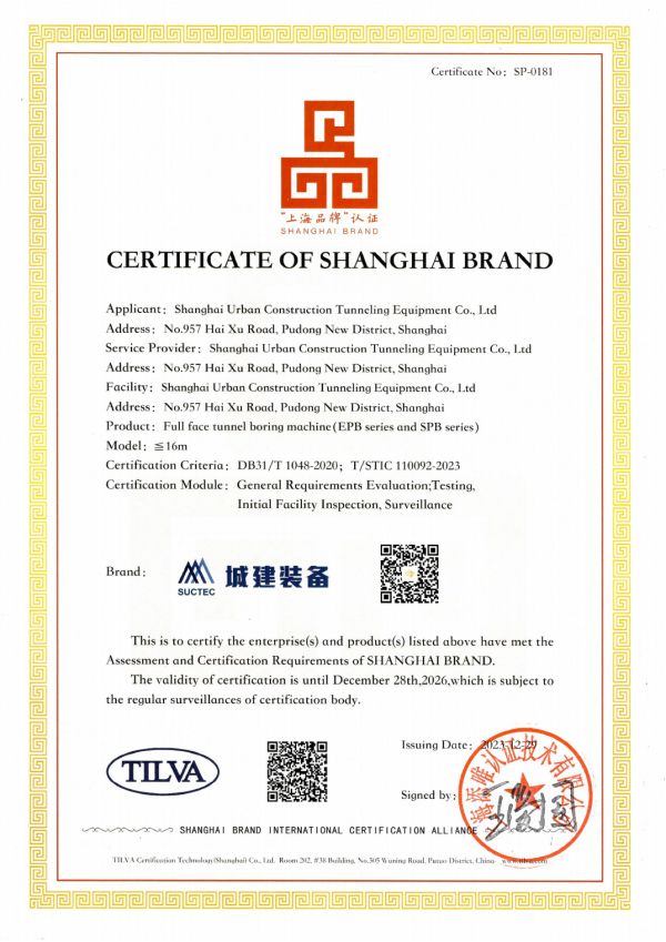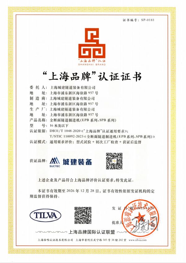 本次隧道股份上海隧道城建装备获得认证的产品——全断面隧道掘进机适应于多种复杂地层环境和各类苛刻施工条件,可满足我国城市地下空间开发,如大型越江公路隧道、轨道交通、人行通道、集成式综合管廊等各类工程建设需求。