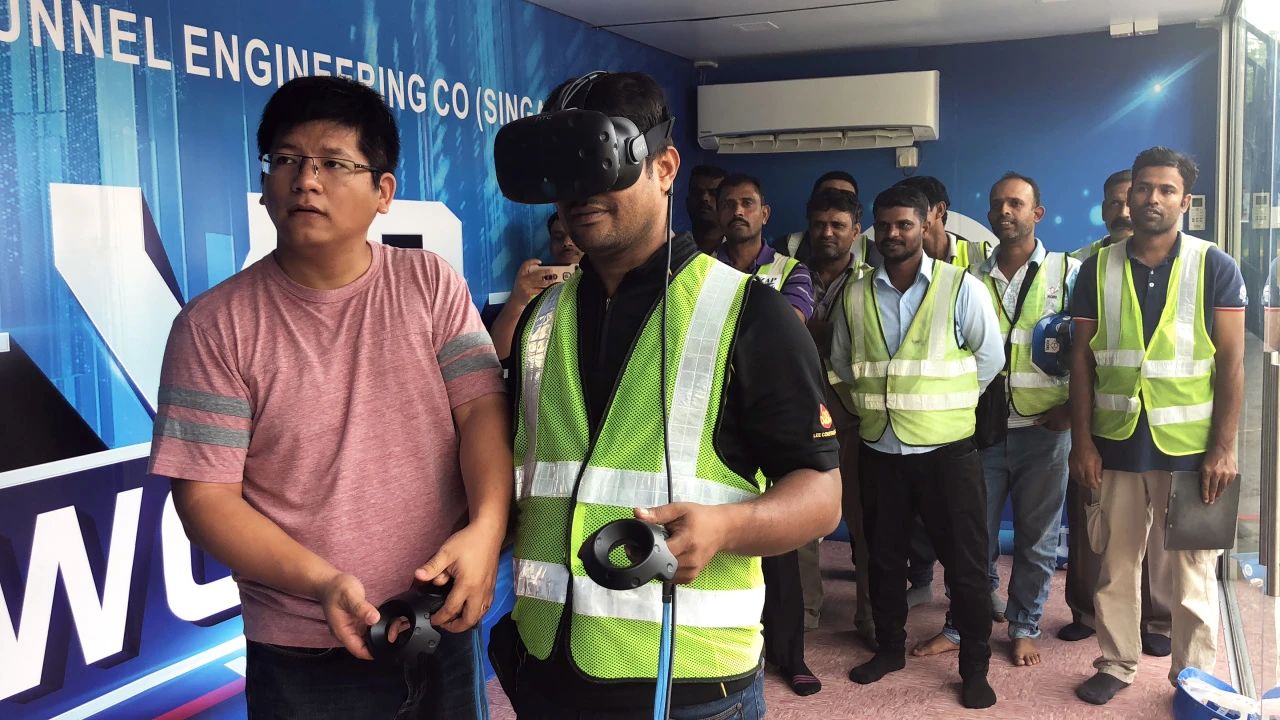 为了让来自不同国家、拥有不同母语的员工,在同一套安全安全体系下工作,隧道股份城建国际还引入了VR培训系统,使员工能够在虚拟环境中模拟和应对各种危险情境,熟悉安全规程和各类工作标准。目前,VR培训系统已多次更新换代,为不同项目、不同场景量身定制工程现场“元宇宙”,以沉浸式培训提升员工风险意识,降低事故发生概率。