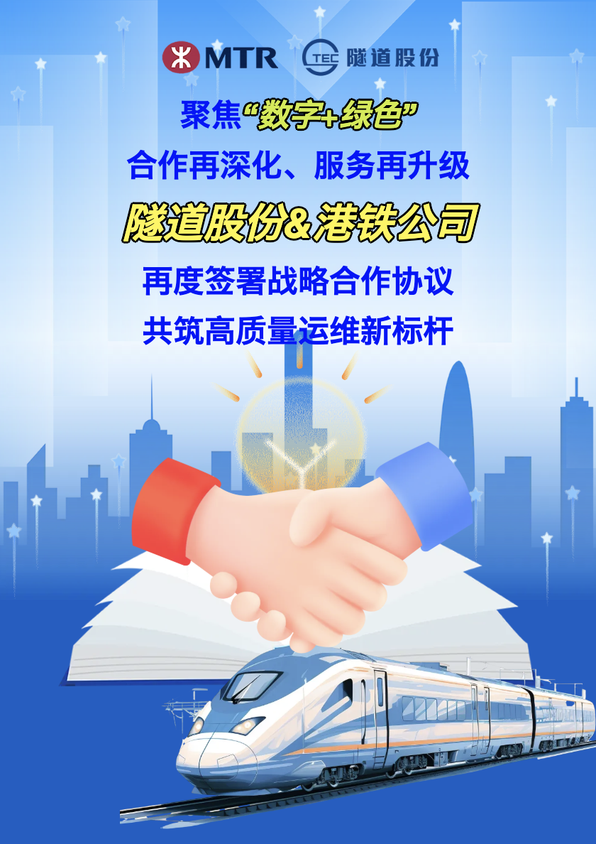 4月28日,隧道股份与港铁公司签署《战略合作谅解备忘录》。双方将在前期全面对接、深度合作的基础上,进一步开拓合作领域、深化协同机制,充分发挥隧道股份在“数字+绿色”及基础设施全生命周期智慧运维领域的技术优势与先进理念,协力推动科技创新与人才培养,聚焦香港铁路运维、低碳节能、数字管理等提供更为卓越的服务,共同为香港铁路高质量发展聚势赋能。