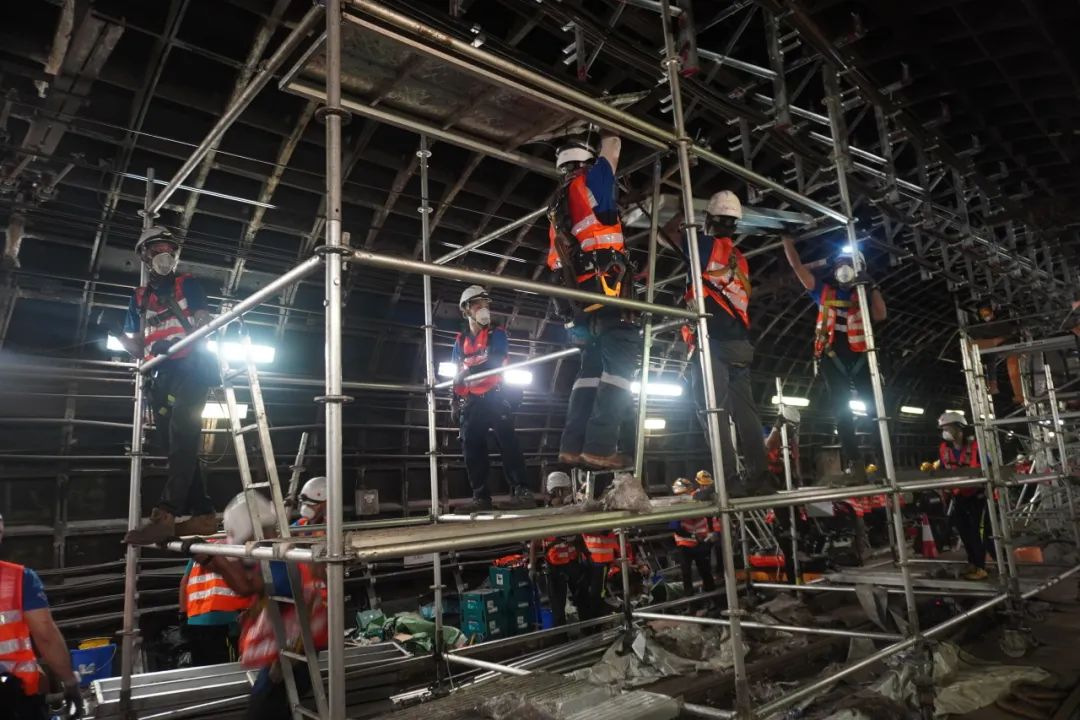 在28小时中,隧道股份城盾隧安的维保队伍深入香港地下,助力港铁隧道观塘线油麻地-旺角区段实施“更新提升”,使其以更健康、安全的结构状态,服务香港市民日常出行。