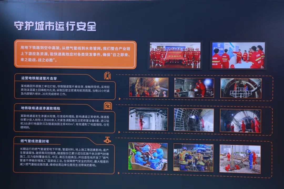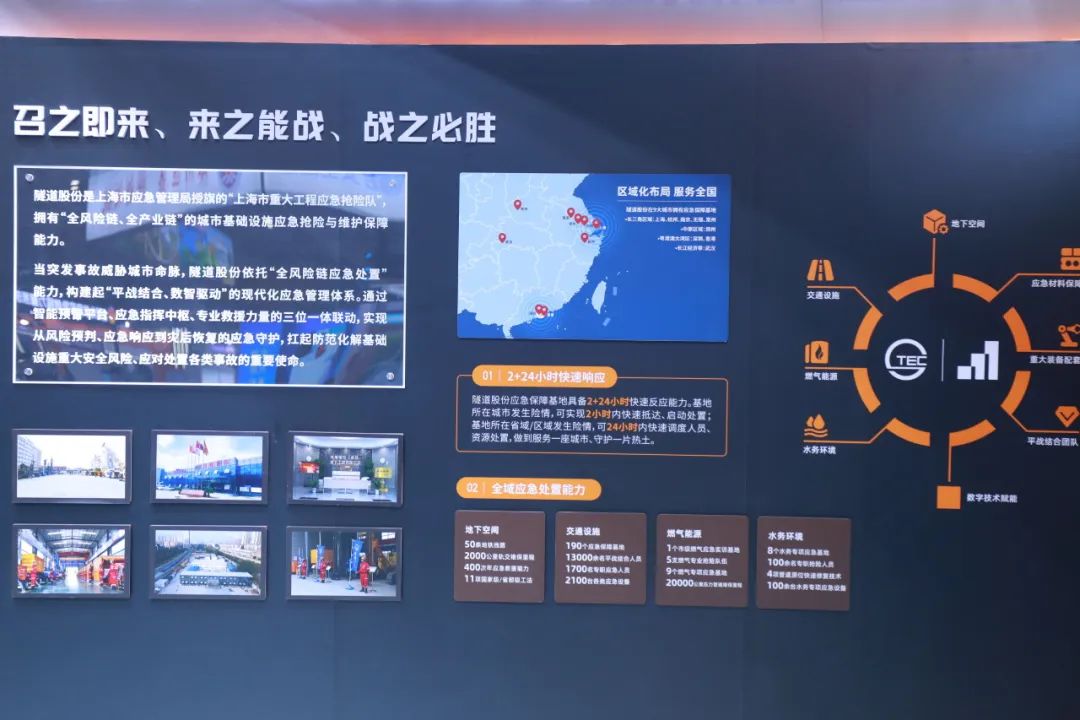 在本次应急展上,隧道股份展示的重大工程、突发灾害抢险案例,同样受到各方瞩目。从地上到地下、从气候灾害到地质灾害,隧道人整合产业链上下游应急资源,快速、高效、专业处置各类突发事件,让灾害影响降至最低。