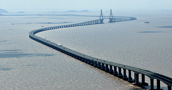上海东海大桥是中国大陆第一座跨越外海的大桥,全长约32.5千...